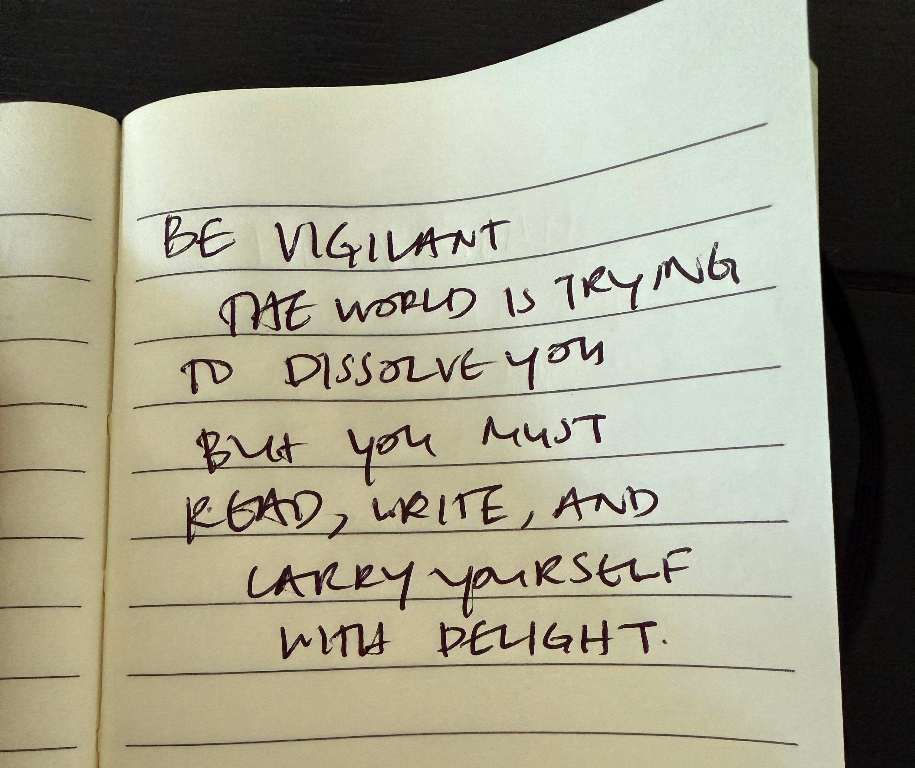 That sometimes (a lot of the time) I get sucked back down into the comparison olympics of social media and gold medal in hating myself with a silver in feeling not good enough™️ and then end up on the page of some random single digit BMI influencer who looks AI generated and wears head to toe Khaite or something for like two to four hours but then I spend a few weeks doing my job and researching an artist like say Jeff Buckley (wink) and am slapped in the mouth with Kylie Jenner level realizations of what I actually want out of the texture and feel of my life and now I have a note above my desk that says “Be vigilant the world is trying to dissolve you but you must read, write, and carry yourself with delight.”