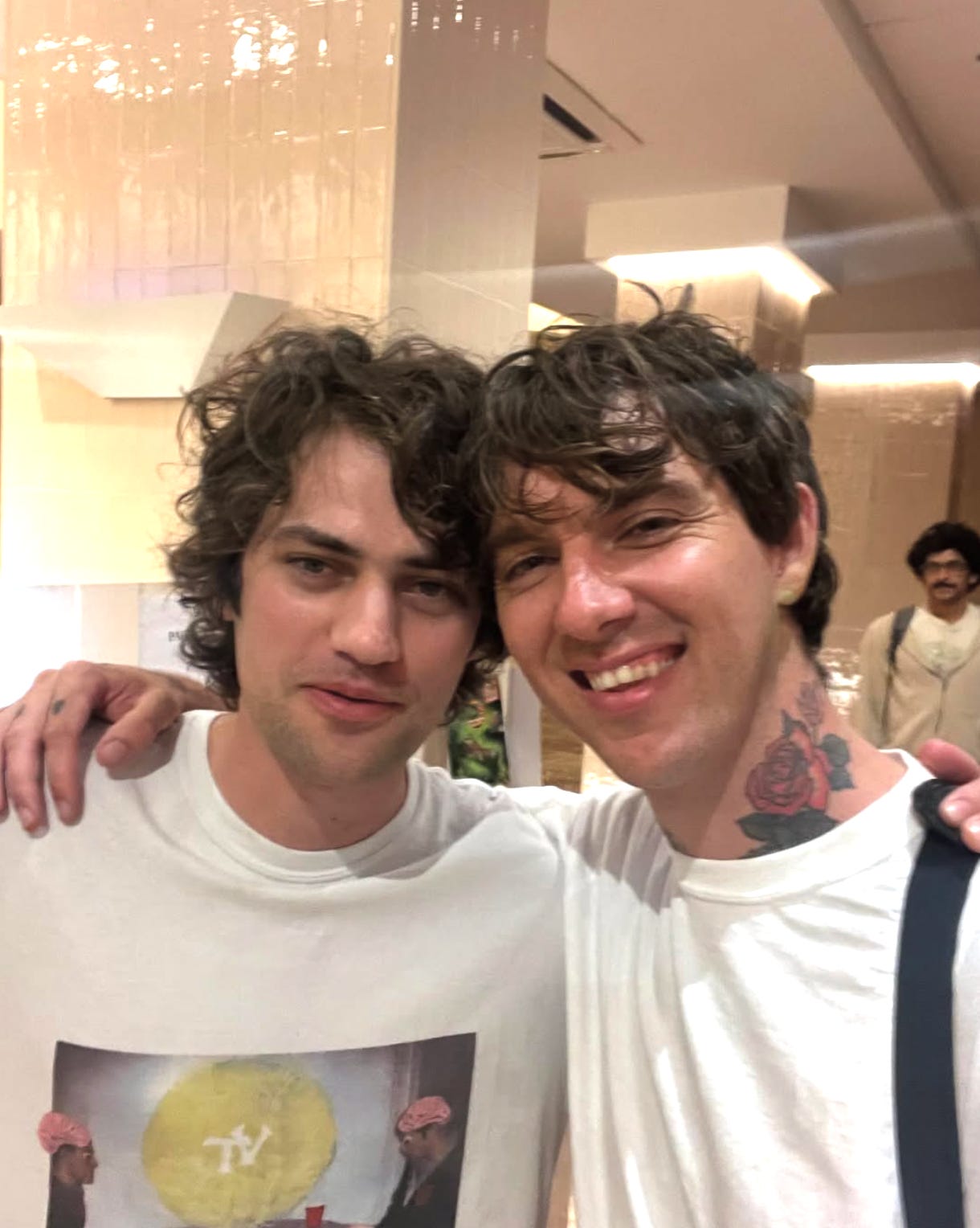 Barry from Joyce Manor posted this photo with MJ Lenderman at Canela Party festival and I found it very moving? Dudes rock (these ones anyway).