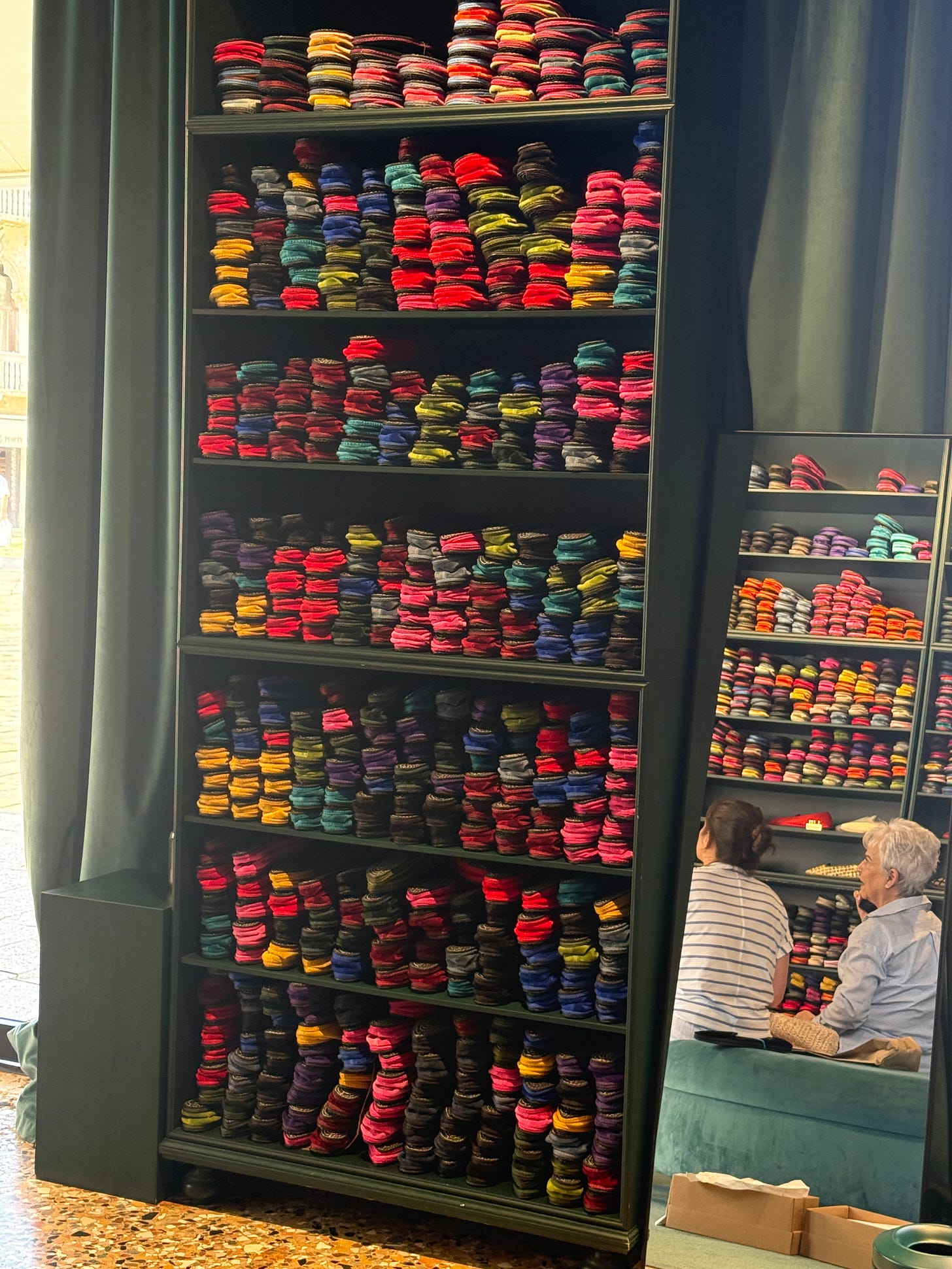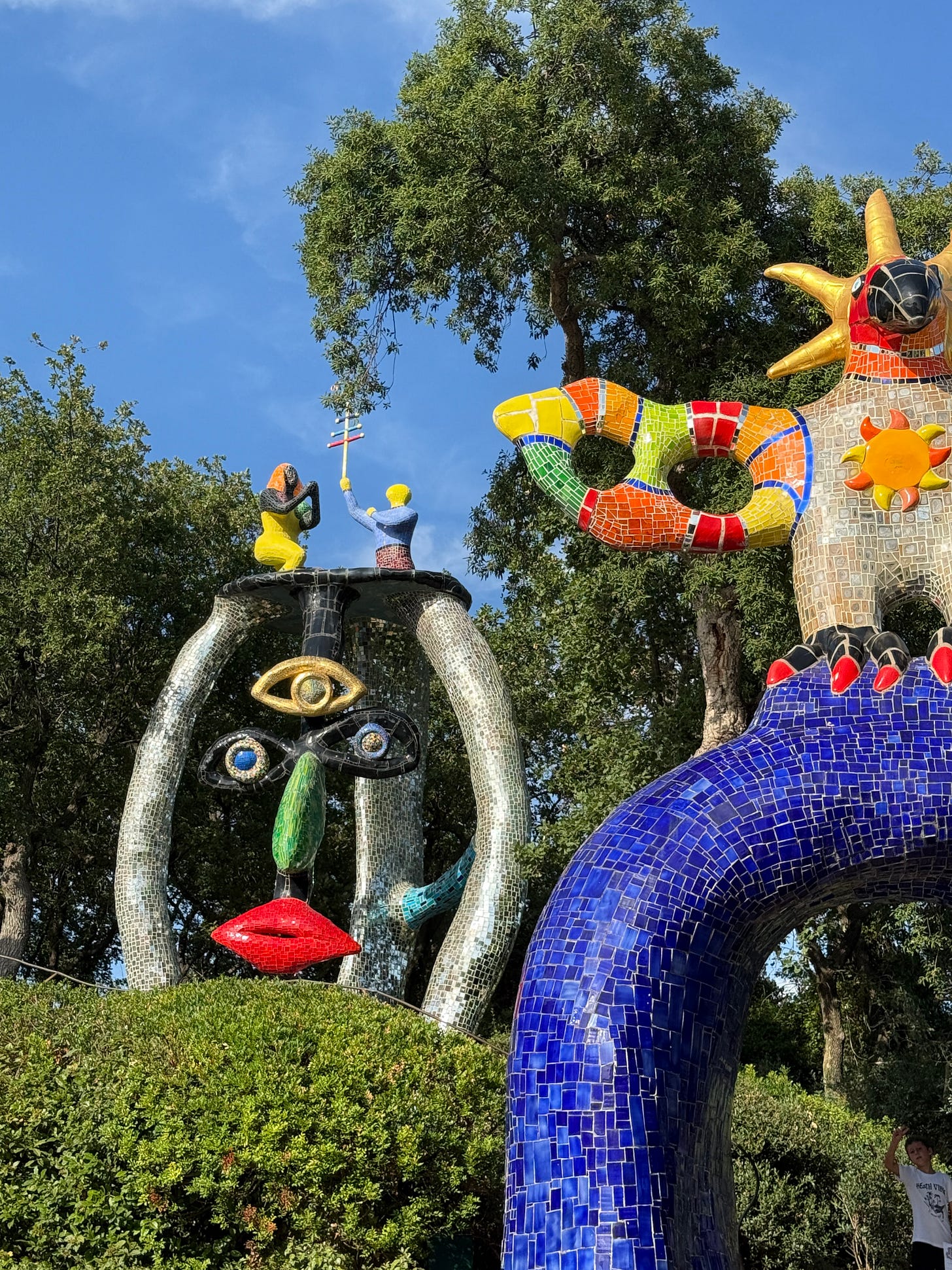 Before Venice, my cousin and my friend Tierney and I visited Il Giardino Dei Tarocchi (aka the Tarot Garden) in Tuscany a few hours outside Rome, which was created by the French artist Niki de Saint Phalle. I’d be lying if I said I knew about her before - we learned about the garden from some new friends at a party in Porto Ercole (hi Marie and Romain!). I love tarot and it’s been documented that I love whimsy but mostly I loved de Saint Phalle’s mind. What I don’t really love is the idea, that many people seem to have started to rally against, that great art comes from great pain, but in this case it does seem to be true (in many cases - luckily or unluckily we pretty much have all experienced some level of relatively great pain). I won’t try to explain her incredibly difficult childhood but it’s worth reading about, as well as the rest of her work in painting, sculpture, and film (this 2016 New Yorker article is good). Keith Haring once lived in one of her sculptures for three months? She herself lived for five years in a small apartment built into The Empress, a house-sized sphinx-like sculpture in the garden. “On the second level, her bedroom was inside one breast, and her kitchen was inside the other one.” Eccentric feminine bohemian workaholic!!! (Don’t worry this is about shopping too - I spent 200 euros at the gift shop).